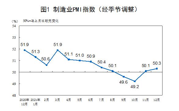12月份,中國制造業采購經理指數(PMI)為50.3%,比上月上升0.2個百分點,高于臨界點,制造業景氣水平繼續回升。